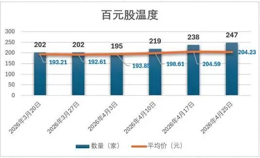 2026年4月25日 沪指收盘:4079.90 +0.70%(周涨跌),百元股占比:4.48%(总数:5517只)