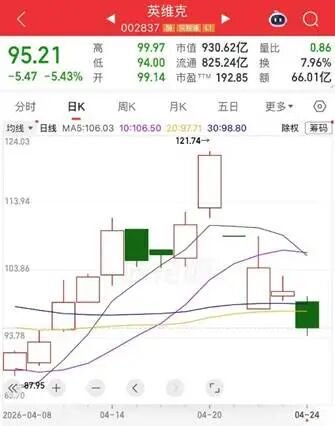 液冷龙头标的英维克(002837.SZ)刚刚在周一创出新高121.74元,但晚间公布的年报季报却给了追捧者一记重击:2025年全年净利5.2191亿,增幅15.2984%,相比此前三年20%+、30%+的增速,2025年明显下滑;更为出人意料的是公司的26年Q1财报爆了一颗雷----公司Q1净利润为865.76万元,同比下降81.97%。